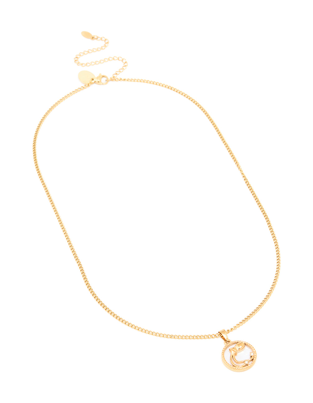 Waterproof Gold Plated Stainless Steel Circle Aquarius Zodiac Sign Necklace