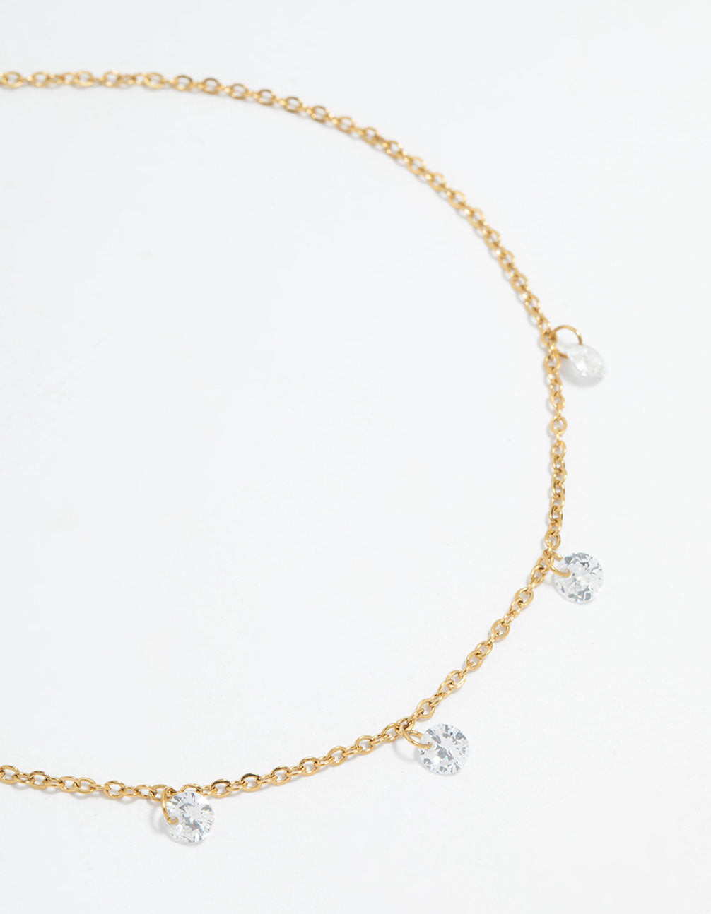 Waterproof Gold Plated Stainless Steel Cubic Zirconia Droplet Anklet