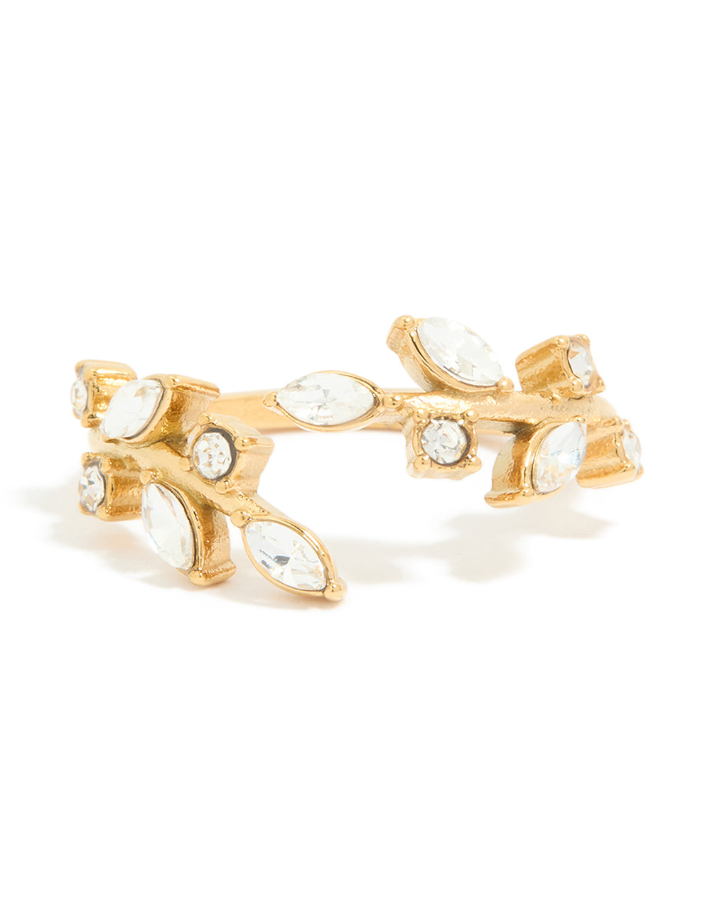 Waterproof Gold Plated Stainless Steel Cubic Zirconia Vine Wrap Ring