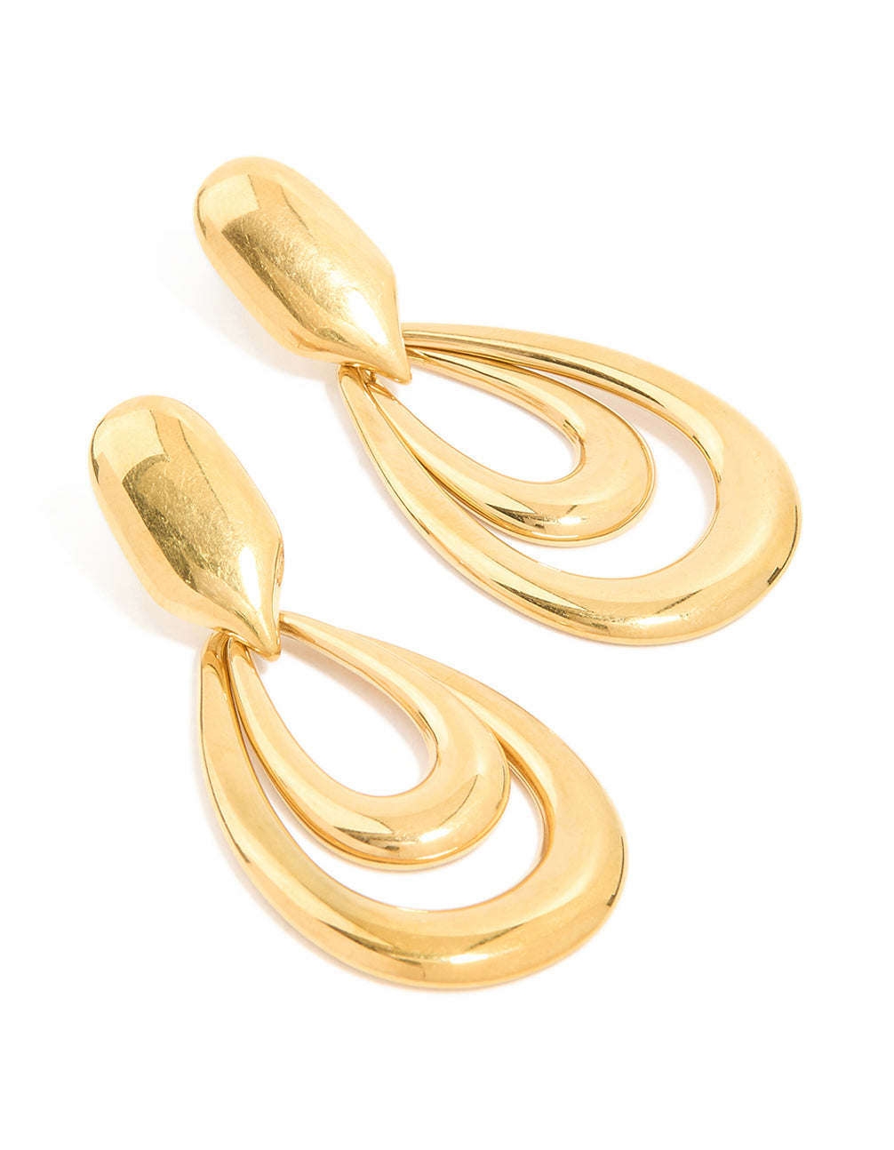 Waterproof Gold Plated Stainless Steel Double Doorknocker Earrings