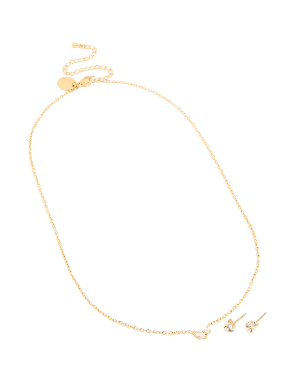 Waterproof Gold Plated Stainless Steel June Cubic Zirconia Birthstone Necklace & Earrings Set
