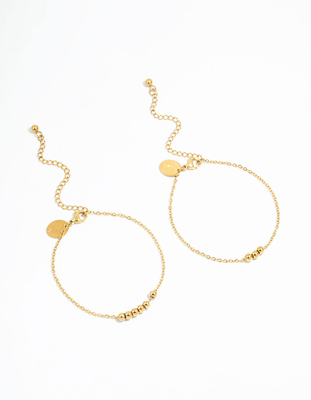 Waterproof Gold Plated Stainless Steel Layered Ball Bracelets 2-Pack