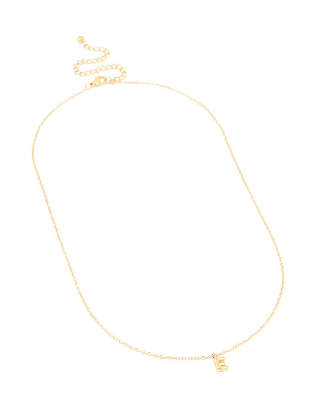 Waterproof Gold Plated Stainless Steel Mini Bubble Letter E Necklace