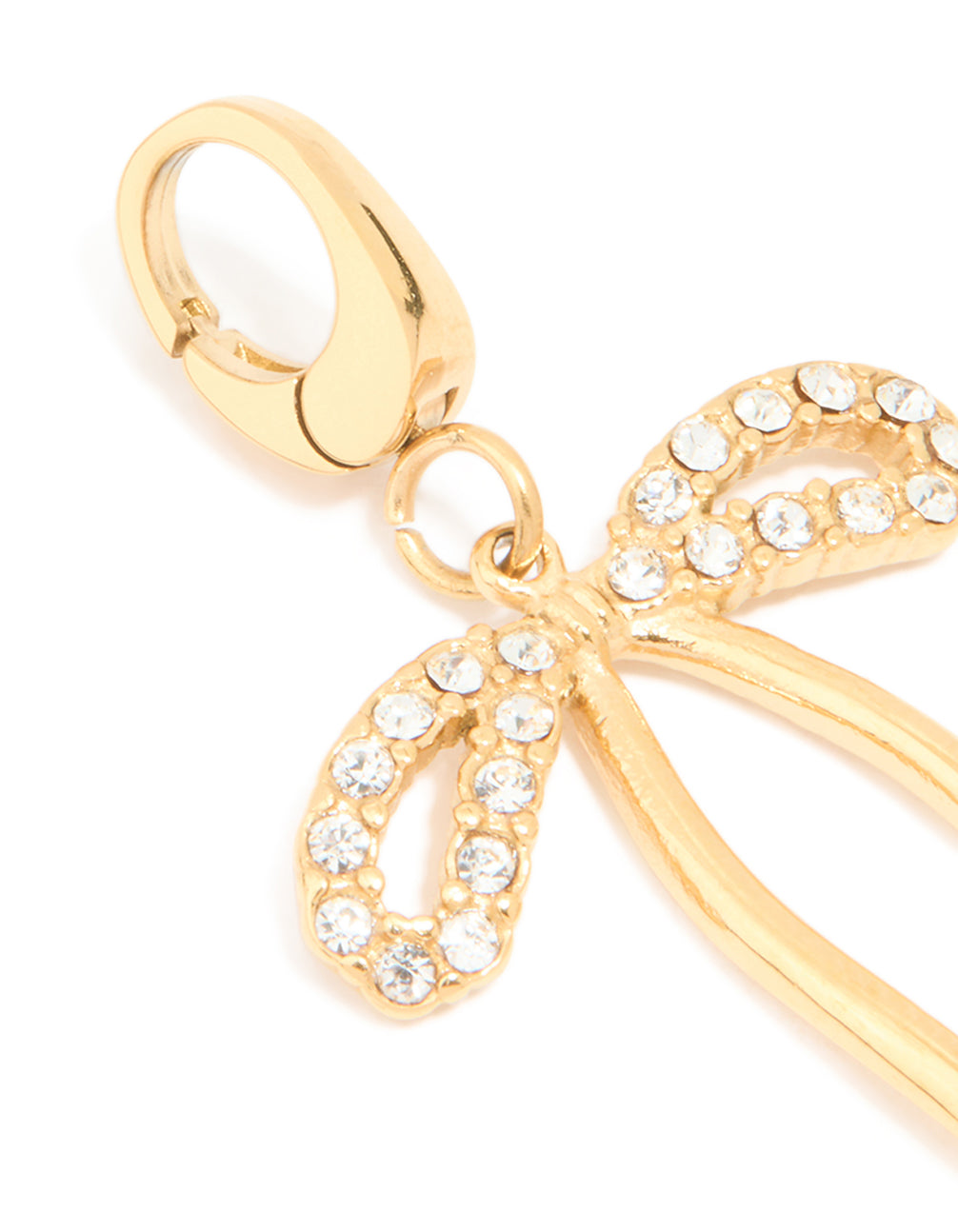 Waterproof Gold Plated Stainless Steel Pavé Cubic Zirconia Bow Charm
