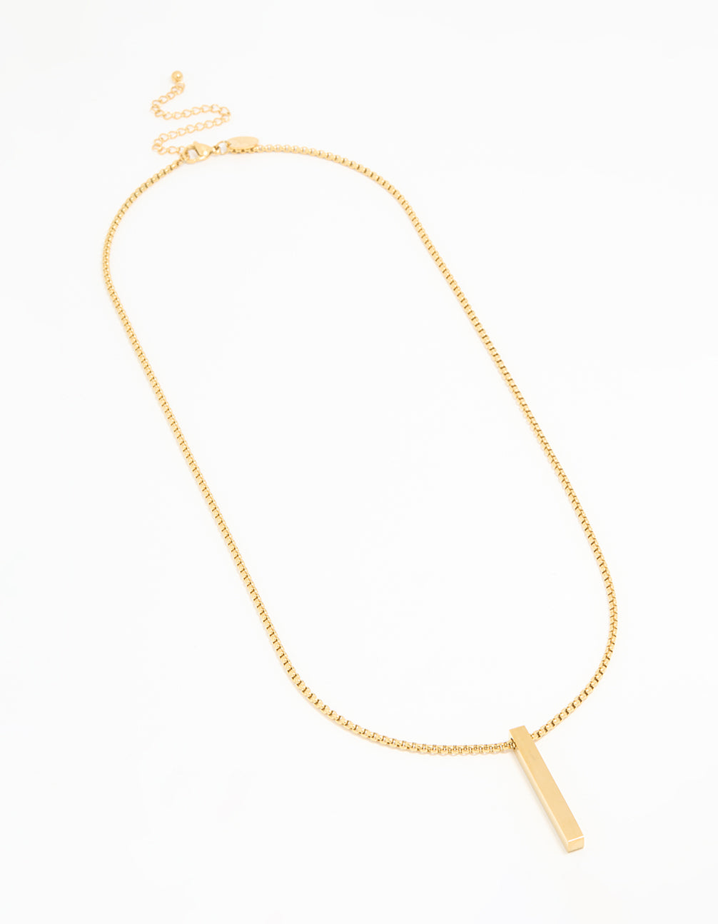 Waterproof Gold Plated Stainless Steel Rectangle Pendant Long Necklace