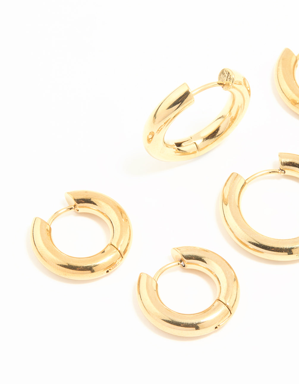 Waterproof Gold Plated Stainless Steel Thick Earrings 3-Pack