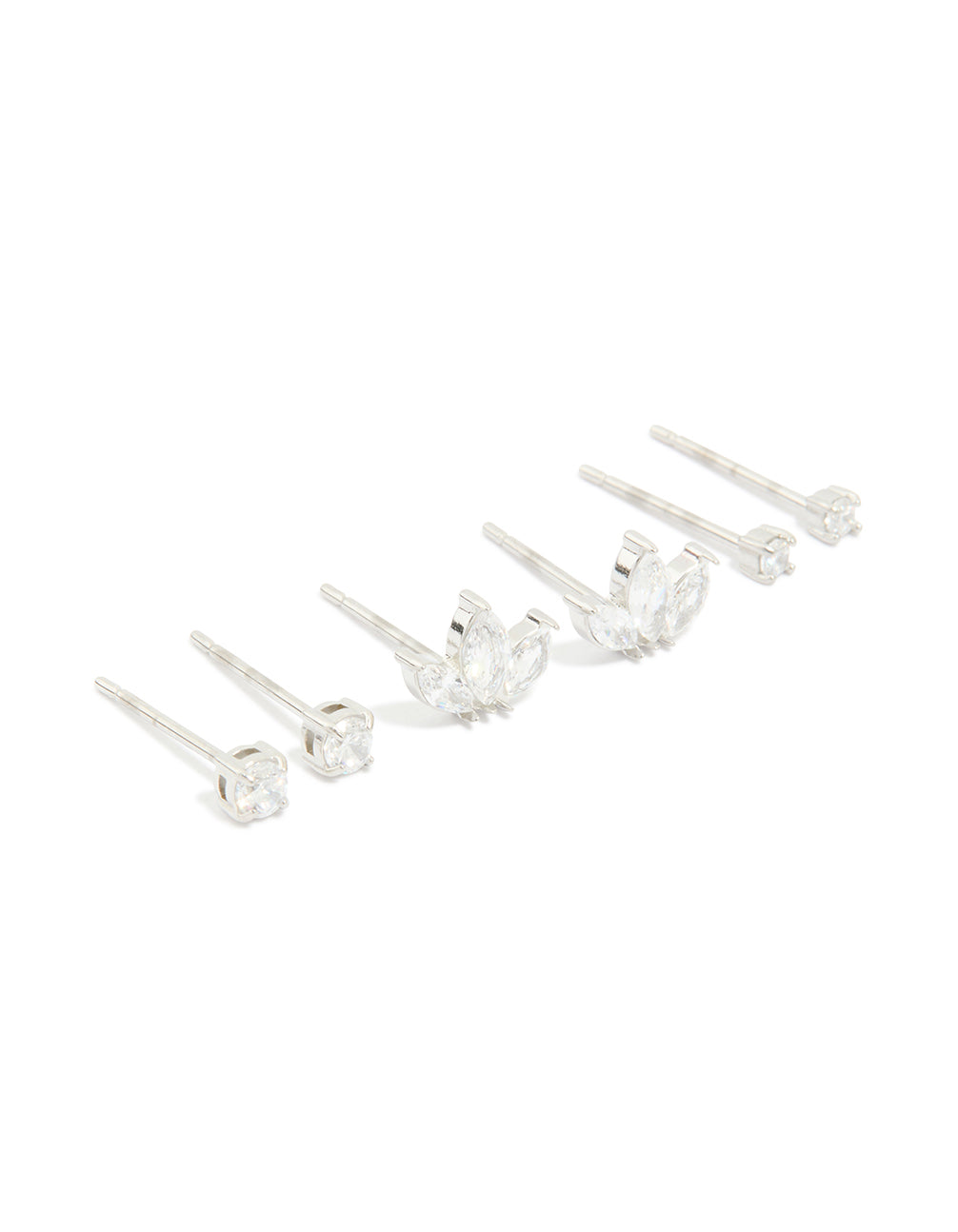 Waterproof Stainless Steel Cubic Zirconia Fine Marquise & Classic Stud Earrings 3-Pack
