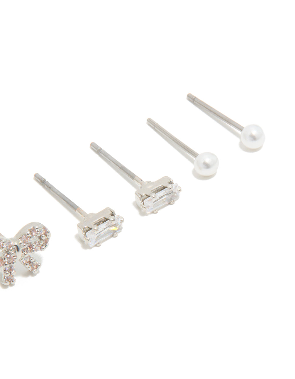 Upgrade your jewellery game with this Waterproof Stainless Steel Cubic Zirconia & Pearl Stud Earrings Pack! This chic collection features four pairs of stud earrings: sparkling cubic zirconia crystals in classic, bow, and rectangle designs, plus timeless pearl studs for effortless elegance. Crafted from durable stainless steel, the earrings in this set are sweat, swim, and shower-proof, making them perfect for everyday wear or special occasions. Style them solo for a minimalist vibe or stack them up, they pair beautifully with everything from casual outfits to party dresses. Whether you're heading to brunch, work, or a night out, these earrings are versatile, stylish, and ready to shine with you!