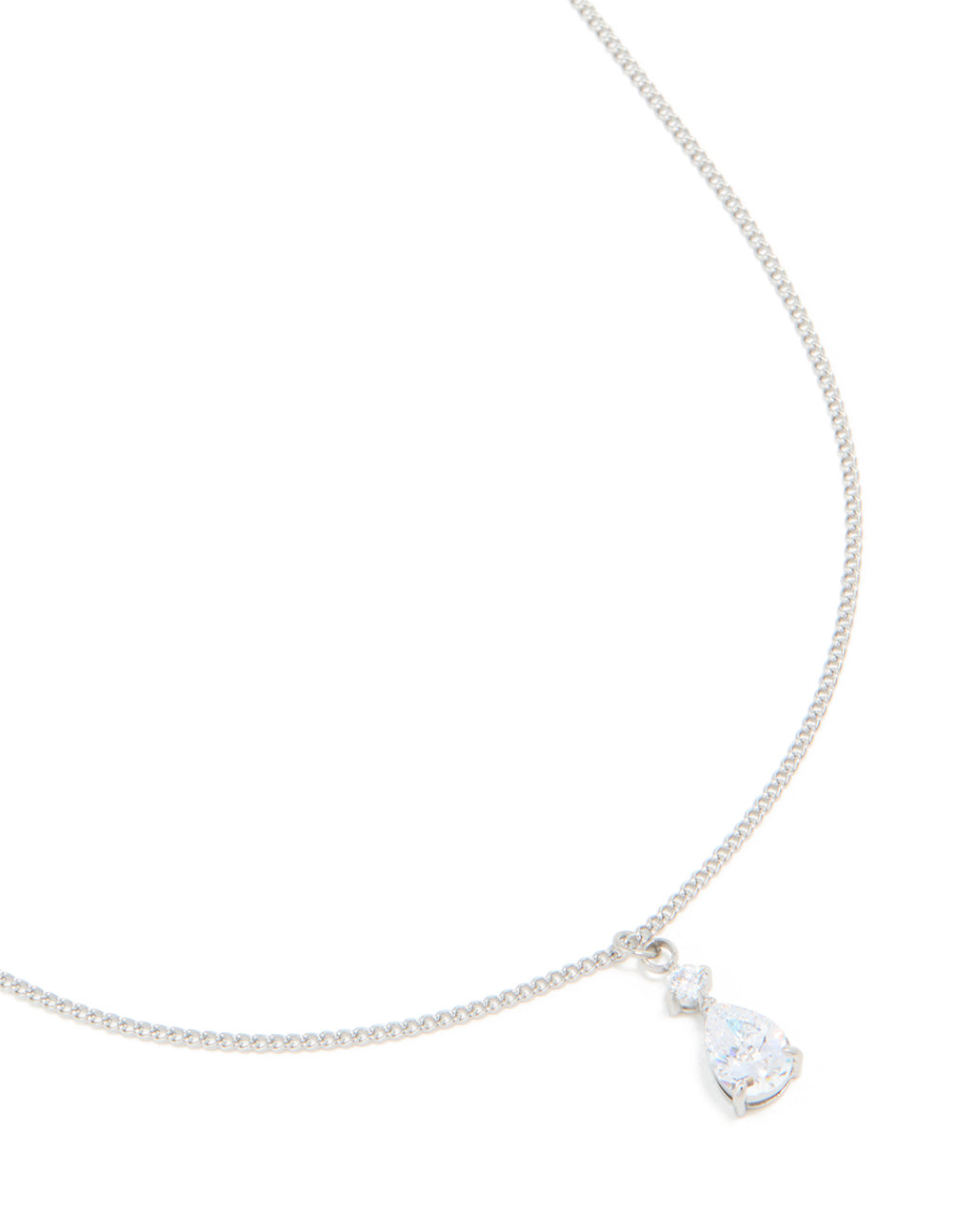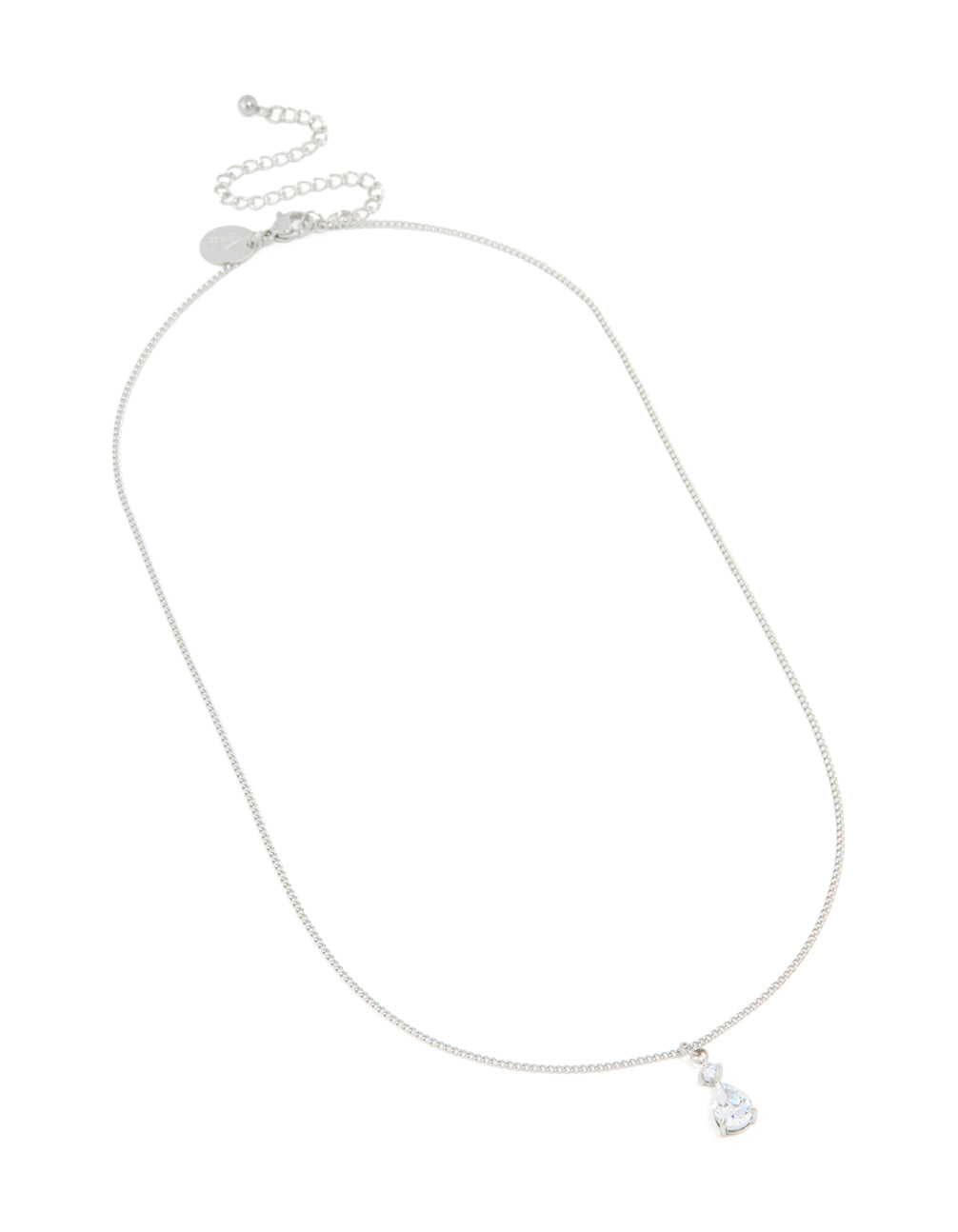 Waterproof Stainless Steel Cubic Zirconia Pear Pendant Necklace