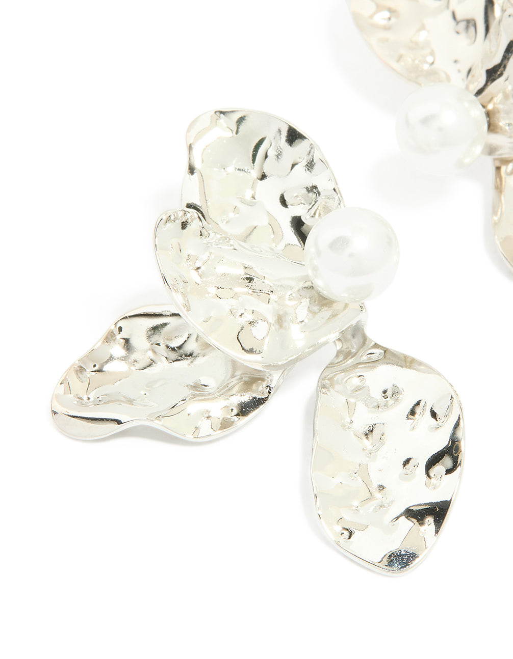 Waterproof Stainless Steel Pearl Large Flower Stud Earrings
