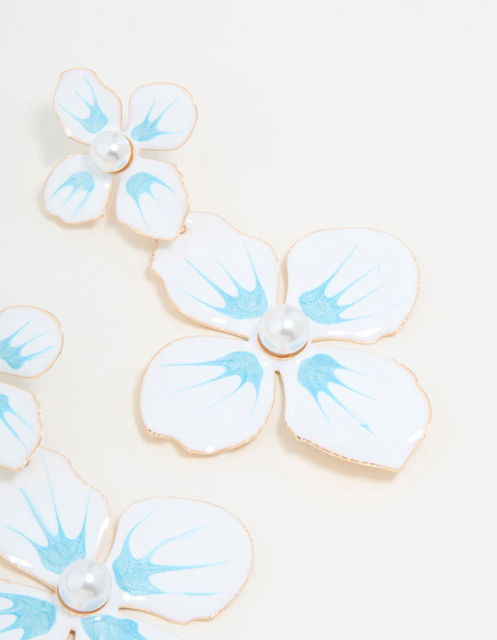 • White & Blue Coated Metal Flower Drop Earrings - link has visual effect only