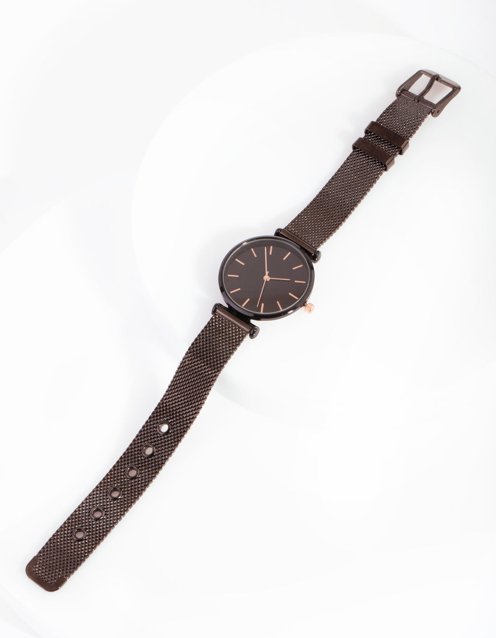 A timepiece is a classic accessory that will stay in style season after season. This watch is both functional and fashionable and features rose gold detailing with a mesh band in a black tone.