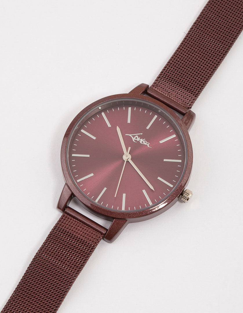 - This Maroon Mesh Light Watch features a striking deep maroon band and watch face, perfect for making a statement.