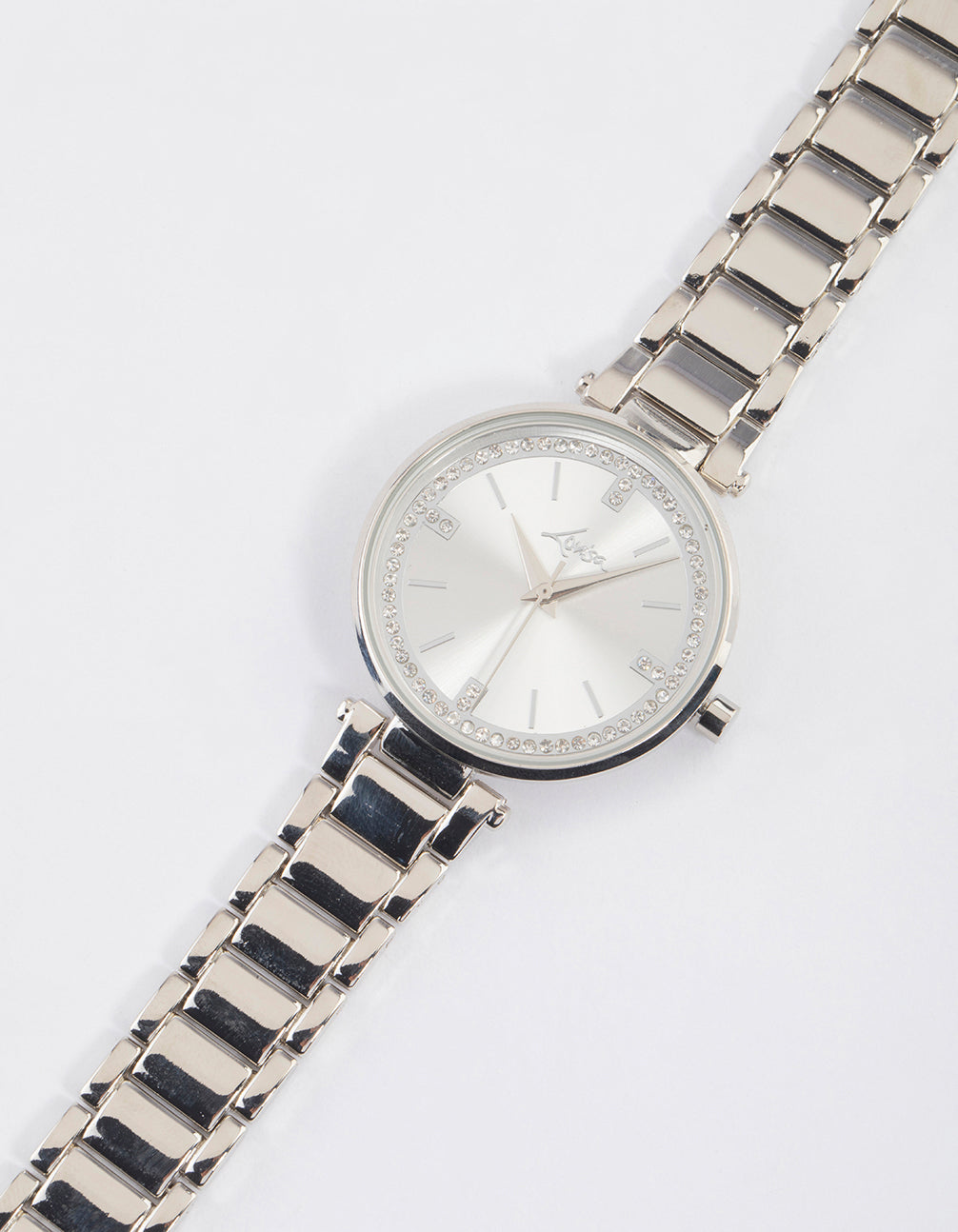 Tell the time in style with our collection of chic and versatile Lovisa watches. Explore unique accessories from our Lovisa Watch Collection, including this silver, classic watch - crafted with a chain style band and diamante encrusted face for added detail.