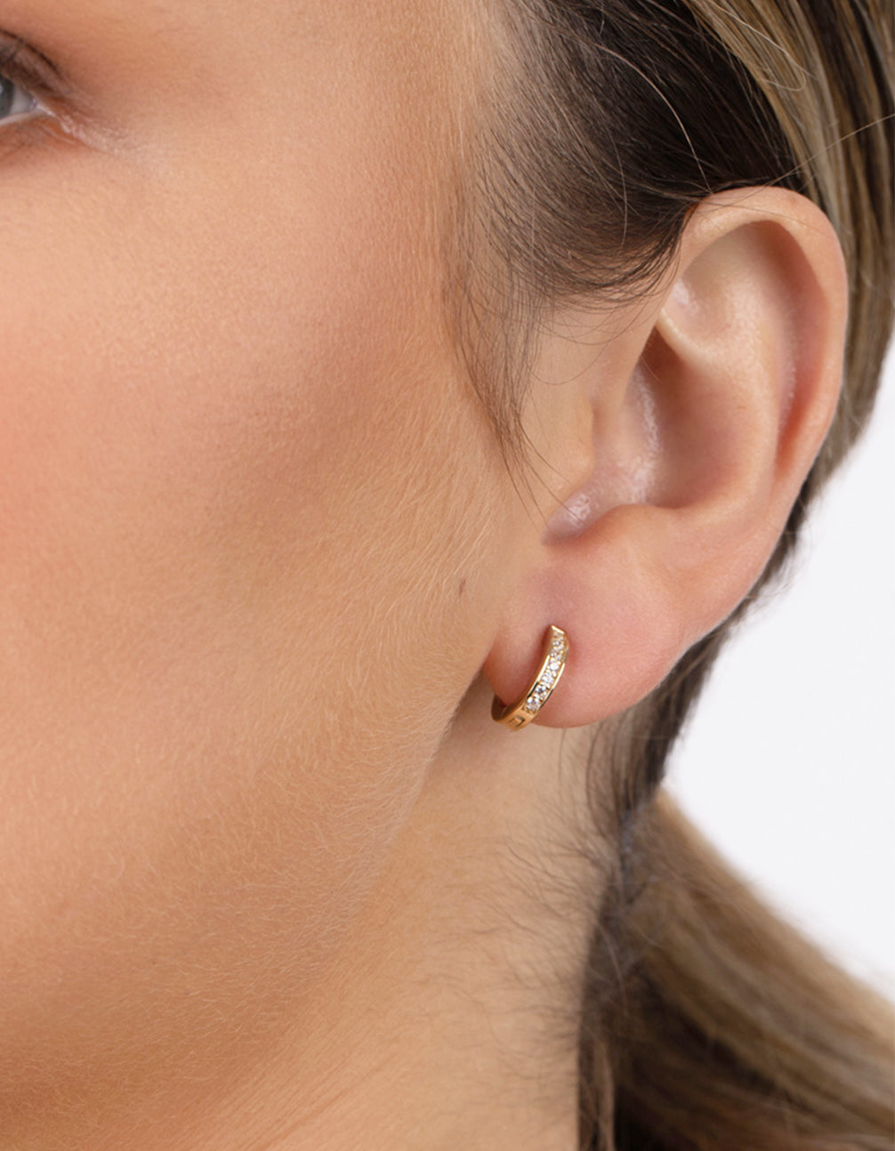 Your new everyday huggies! These gold-plated huggie earrings feature small cubic zirconia stones. Perfect worn alone as a subtle look or in a curated ear!