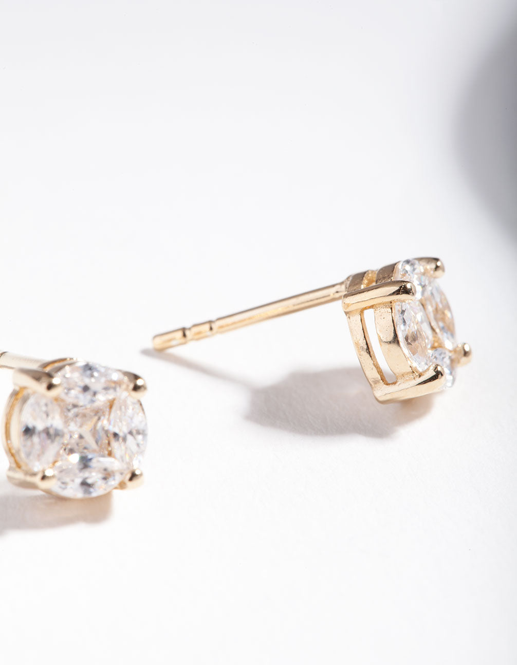 Gold plated sterling silver styles are the ultimate jewellery-box essential. Dress up your look with this stunning multi cubic zirconia stone stud earring.