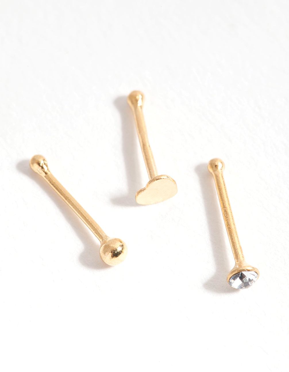 Gold Plated Sterling Silver Heart Nose Stud Pack