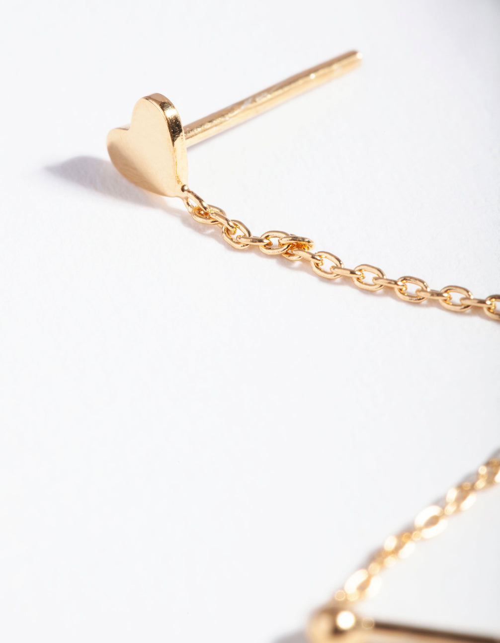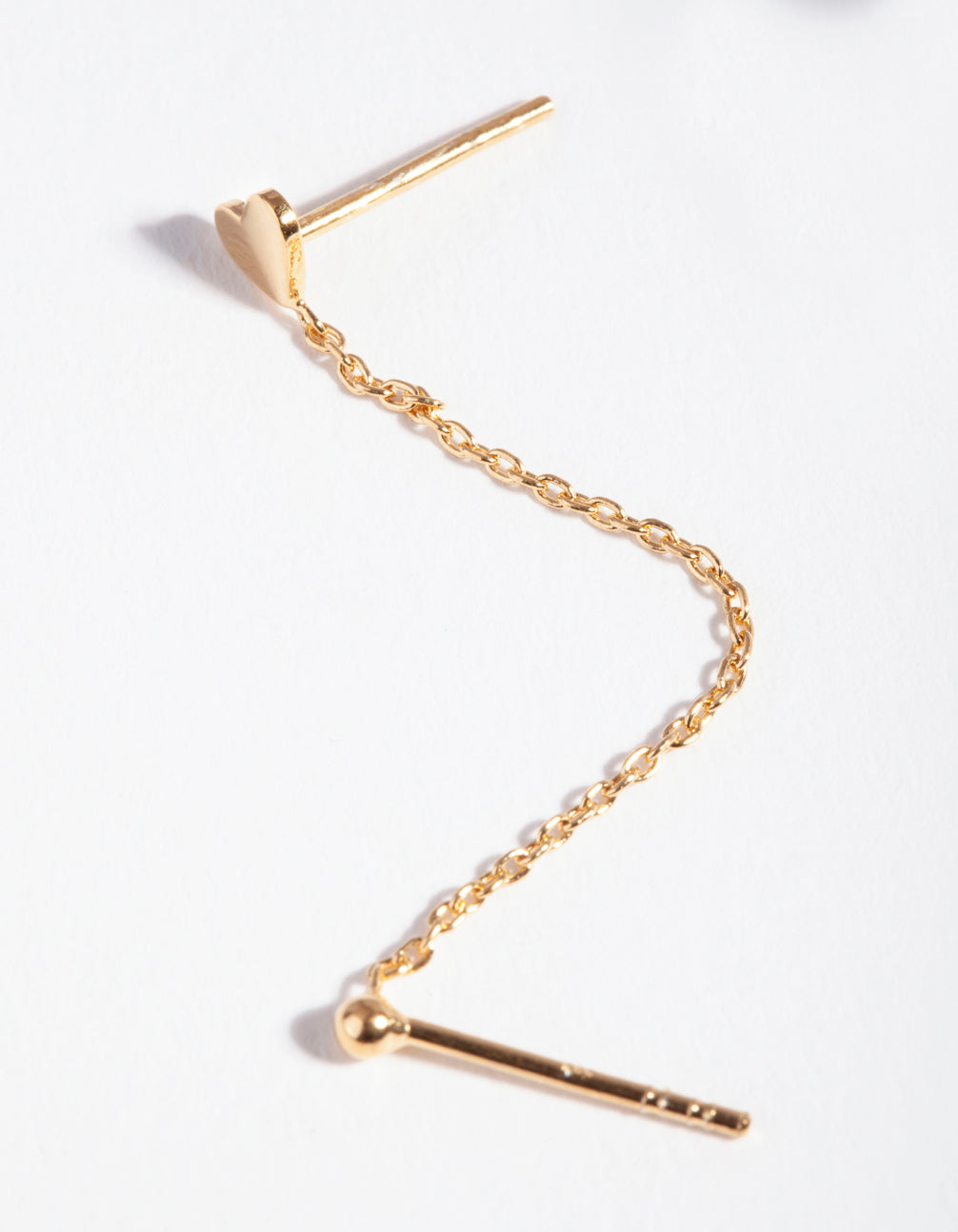 Gold Plated Sterling Silver Heart Chain Double Stud Earring Gold Plated Sterling Silver Heart Chain Double Stud Earring Gold Plated Sterling Silver Heart Chain Double Stud Earring