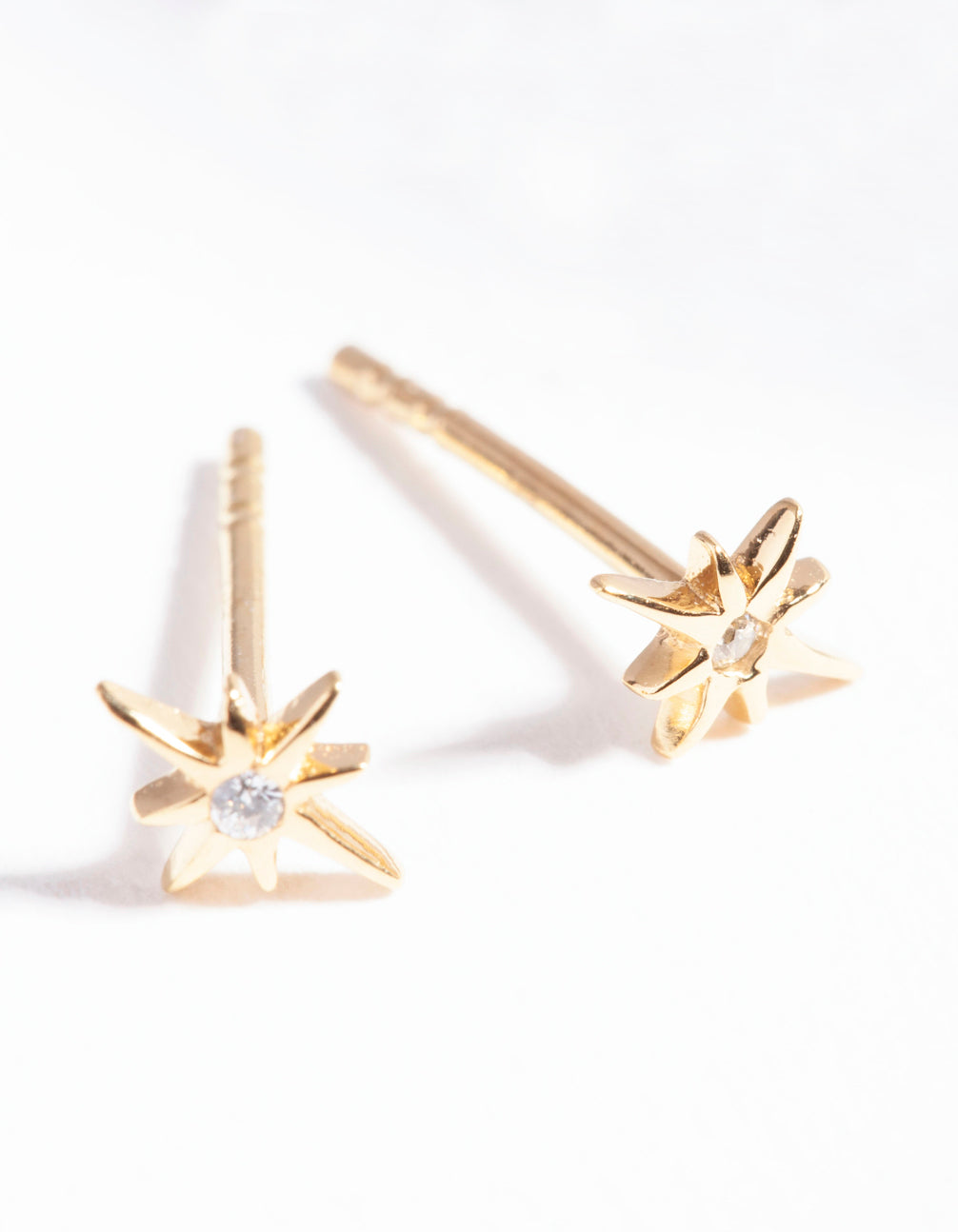 Attract light and shine with gold plated sterling silver jewellery encrusted with cubic zirconia stones. These flawless embellishments are the perfect way to bring that added bit of sparkle to your collection. These stud earrings feature a celestial star design and come in a mini stud shape, making them easy to style with all of your looks.