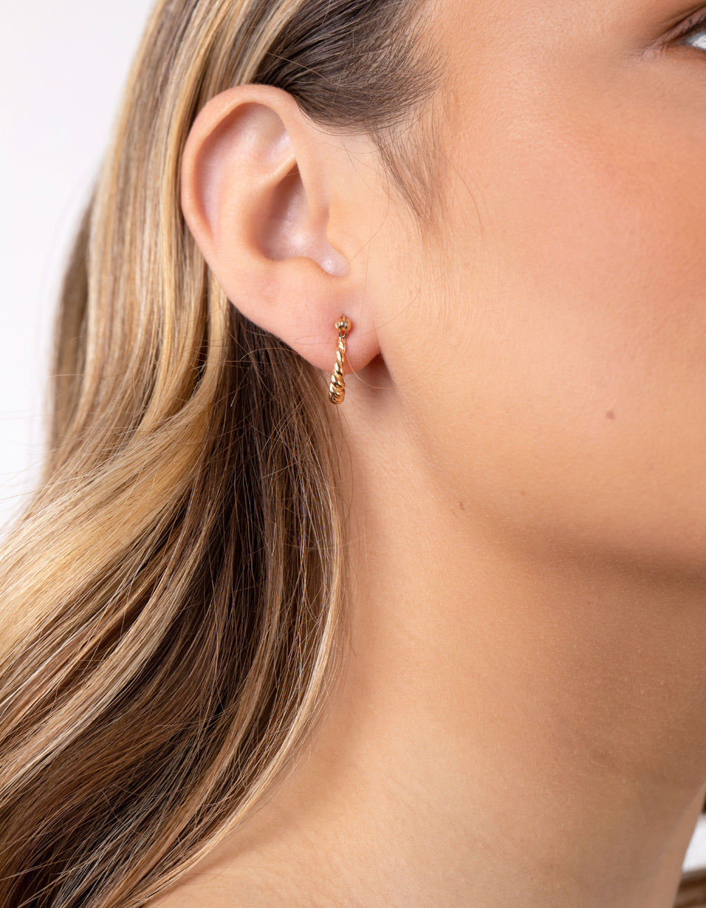 Round out your jewellery collection with gold plated sterling silver jewellery. These treasures boast a sterling silver base with premium plating and classic designs to suit your everyday outfits. This earring is perfect for stacking and features a mini twist creole hoop design.