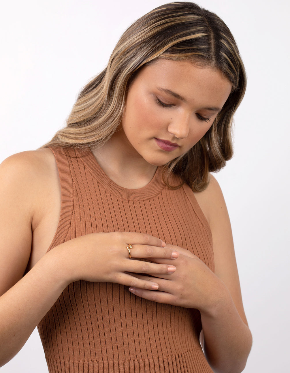 You're precious, so you deserve precious metals. This stunning sterling silver ring is plated with genuine gold, and it features an elegant open front design that is sure to incite intrigue.